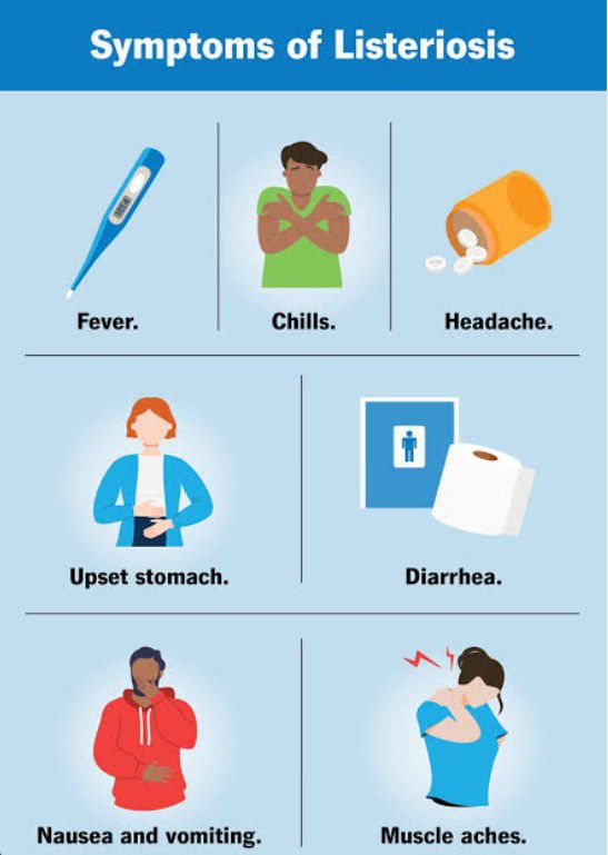 The symptoms vary with the infected person: Higher-risk people other than pregnant women: Symptoms can include fever, muscle aches, headache, stiff neck, confusion, loss of balance, and convulsions.