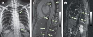 Recurrent chest pains A 40-year-old woman presented with complaints of a 4-year history of recurrent central chest pain. She gave a history of having a prolonged fever for about 3 months accompanied by arthralgia at the age of 13 years, but the fever resolved gradually. 1) Hyperparathyroidism 2) Idiopathic hypercalcaemia 3) Aortic aortitis 4) Hyperlipidaemia