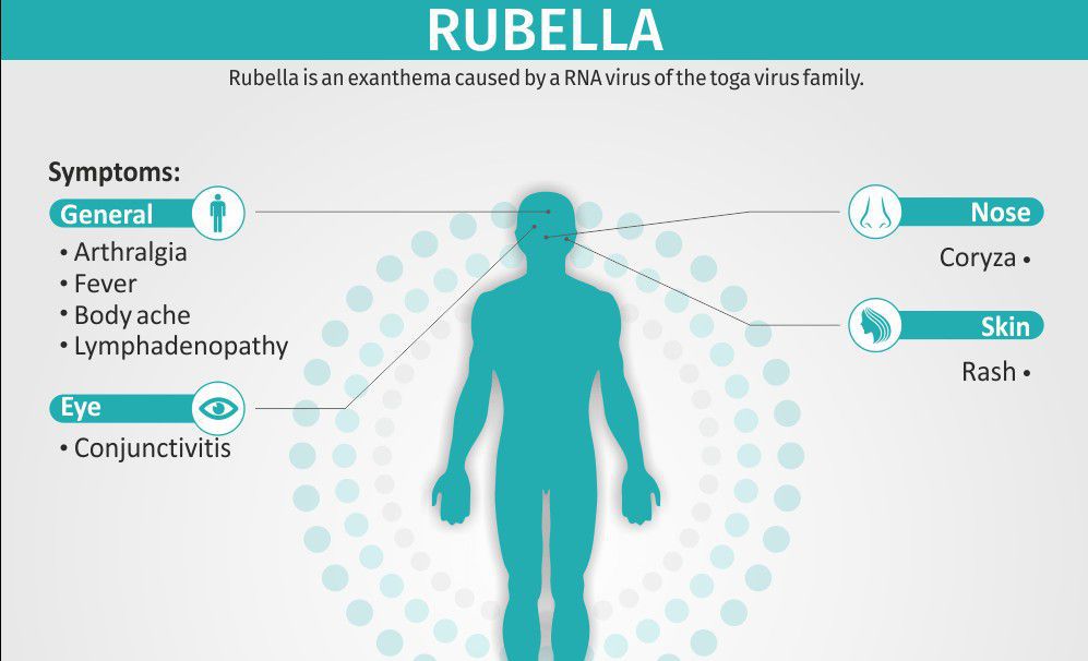 Most people who get rubella usually have a mild illness, with symptoms that can include a low-grade fever, sore throat, and a rash that starts on the face and spreads to the rest of the body. Rubella can cause a miscarriage or serious birth defects in a developing baby if a woman is infected while she is pregnant