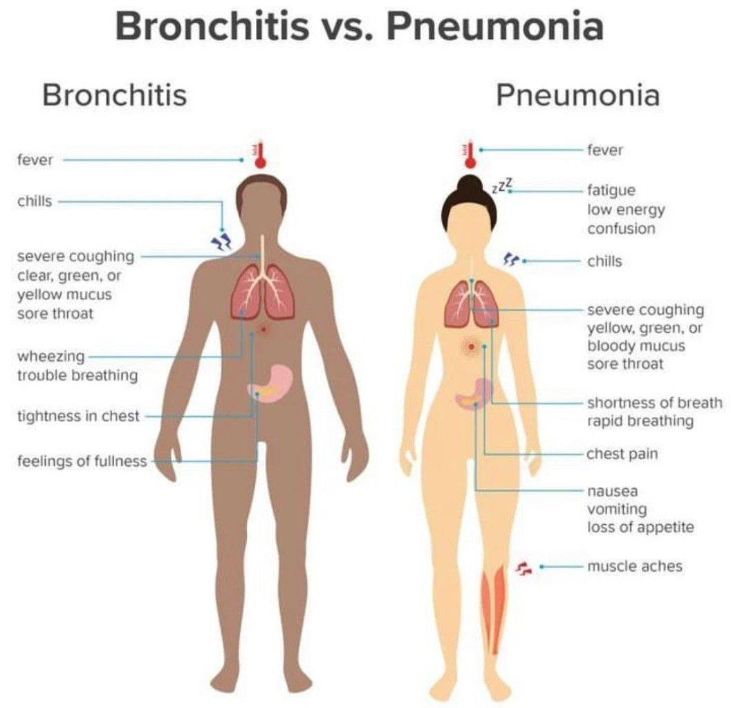 Here is a brief comparison of Bronchitis and Pnemonia.