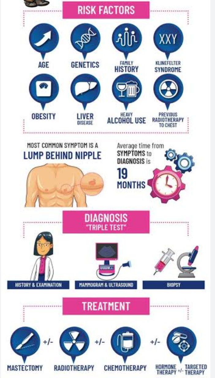 Causes of breast cancer in men increasing age. family history of breast cancer in first-degree relatives (male or female) who have had BRCA2 breast cancer; or several relatives who have had colon, prostate or ovarian cancer. high levels of oestrogen. some testicular disorders.