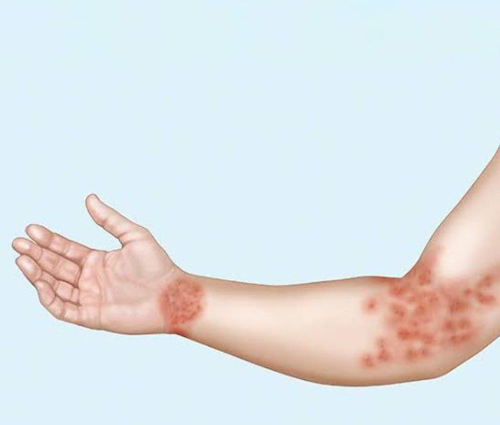The patches are often swollen, blistered (covered with small fluid-filled pockets) and ooze fluid at first, but become dry, crusty, cracked and flaky over time. The patches may clear up on their own eventually, but this can take weeks, months or even years if not treated, and they can recur.