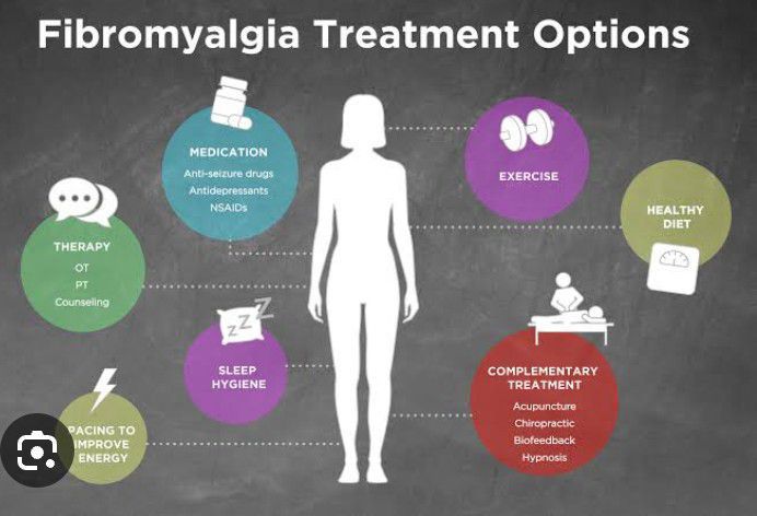 How is fibromyalgia treated? Over-the-counter (OTC) or prescription medicine to relieve pain. Exercises like stretches or strength training. Sleep therapy. Cognitive behavioral therapy. Stress management therapy. Antidepressants.