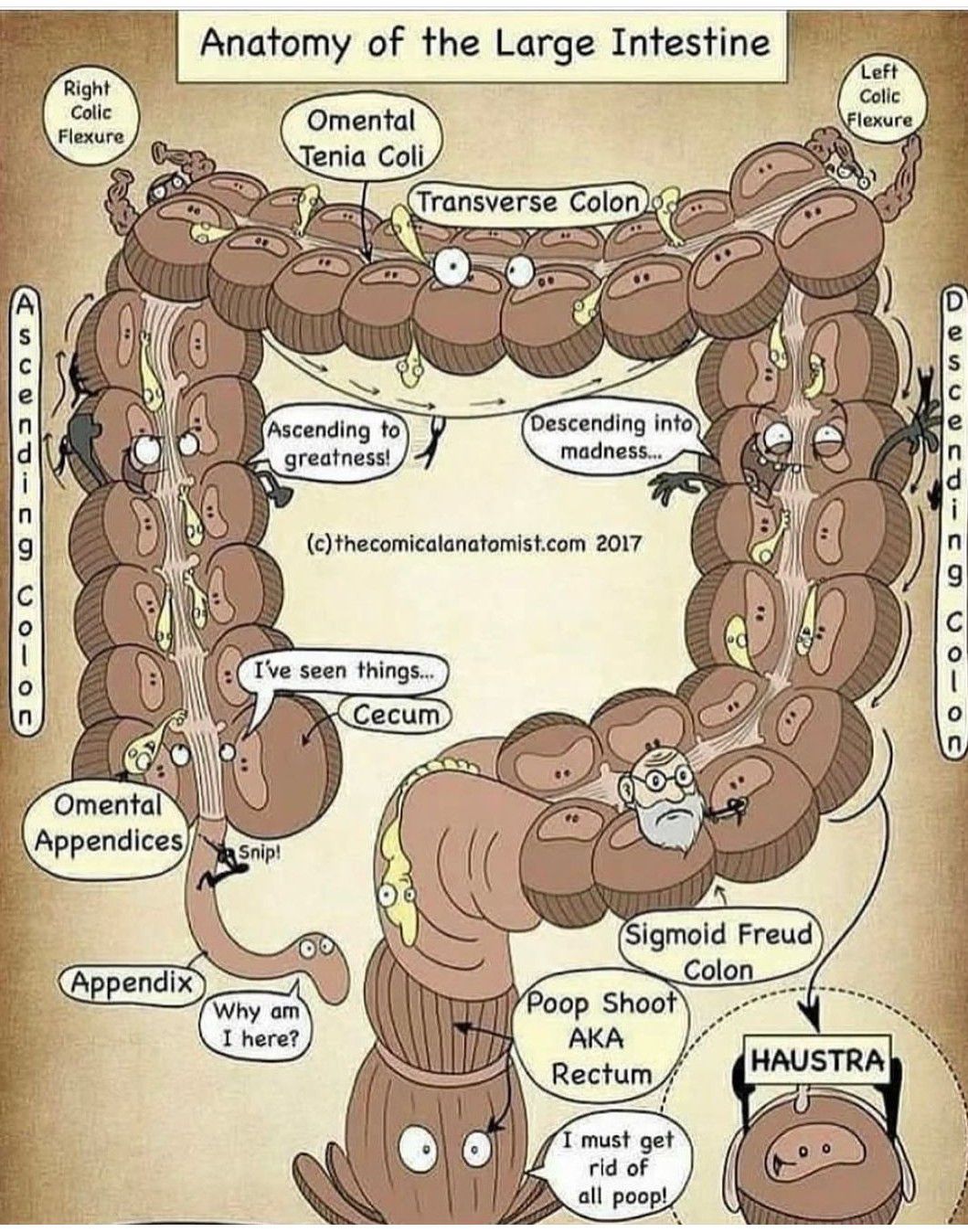 Here is a pictorial review of large intestine anatomy.