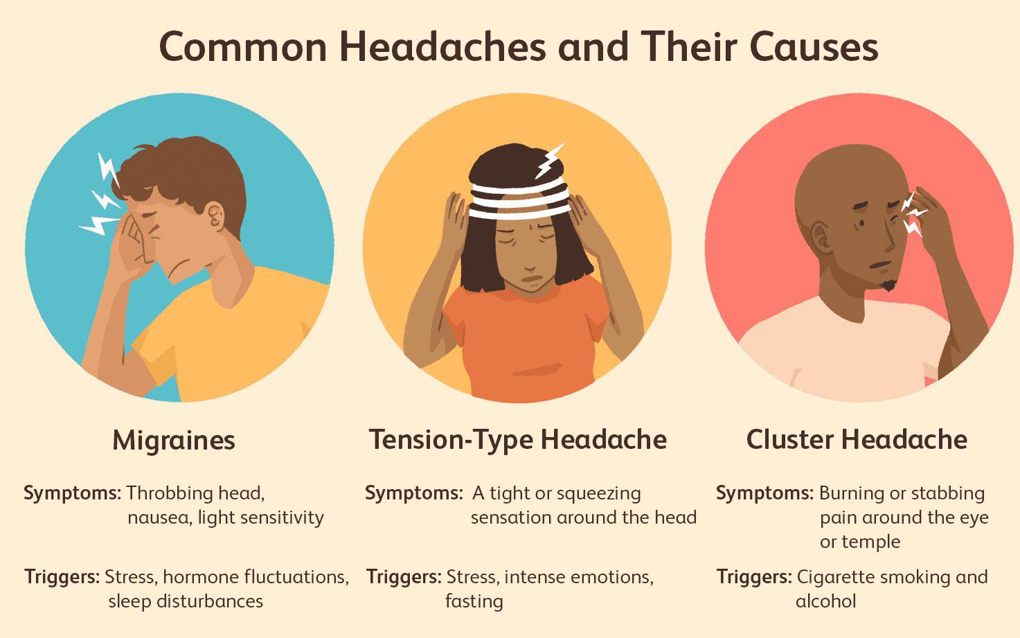 Some of the more common triggers for headache are lifestyle related, such as poor diet, stress, muscle tension, and lack of exercise. Serious underlying disorders, such as brain tumours, are rarely the cause of headache, although persistent headache should always be investigated by a doctor.