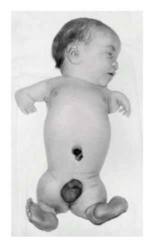 Thalimide baby. Medicine given to mothers for morning sickness in the 60's with the devastating affect occurring.