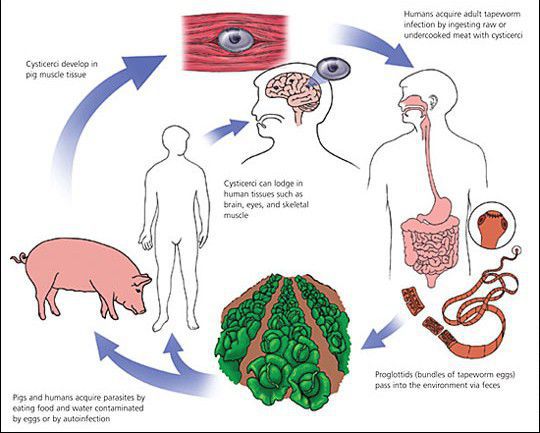 Neurocysticercosis is a preventable parasitic infection caused by larval cysts (enclosed sacs containing the immature stage of a parasite) of the pork tapeworm (Taenia solium).