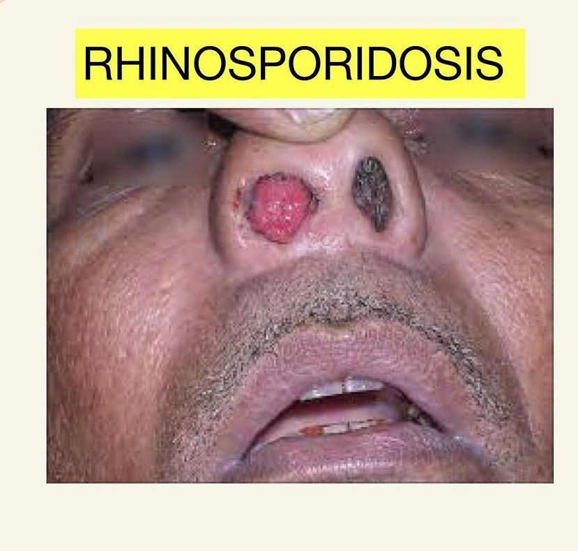 Rhinosporidiosis occurs when the endospores of R. seeberi infect the mucosa through a traumatized epithelium, leading to hyperplasia and growth of a soft lesion on the site of infection. It can present in various locations in the body, but predominantly arise in the nasal passage, eyes and oropharynx.