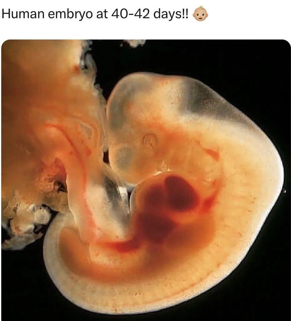 Human embryo at 40 to 42 days of gestation.