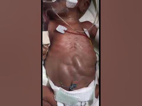 A male infant was delivered as the third trichorionic triamniotic triplet at 28 weeks of gestation by emergency cesarean section owing to growth arrest. His birth weight was 1124 g, and the Apgar scores were 5 at 1 minute and 6 at 5 minutes. On the first day of life, he had bilious vomiting and abdominal distention with visible intestinal peristalsis (see video), and he was unable to pass meconium. An abdominal radiograph showed distended bowel loops. In such infants, this finding may be the result of any form of distal bowel obstruction, including meconium-related ileus, intestinal atresia, malrotation, and Hirschsprung’s disease. The administration of water-soluble contrast enemas can be not only diagnostic but also therapeutic. However, surgical decompression is occasionally required. In this case, a diagnosis of meconium-related ileus was made. Repeated water-soluble contrast enemas were administered to clear the intestines of all plugs, and the vomiting and abdominal distention resolved. The patient was discharged on day 93 with full oral feeding.