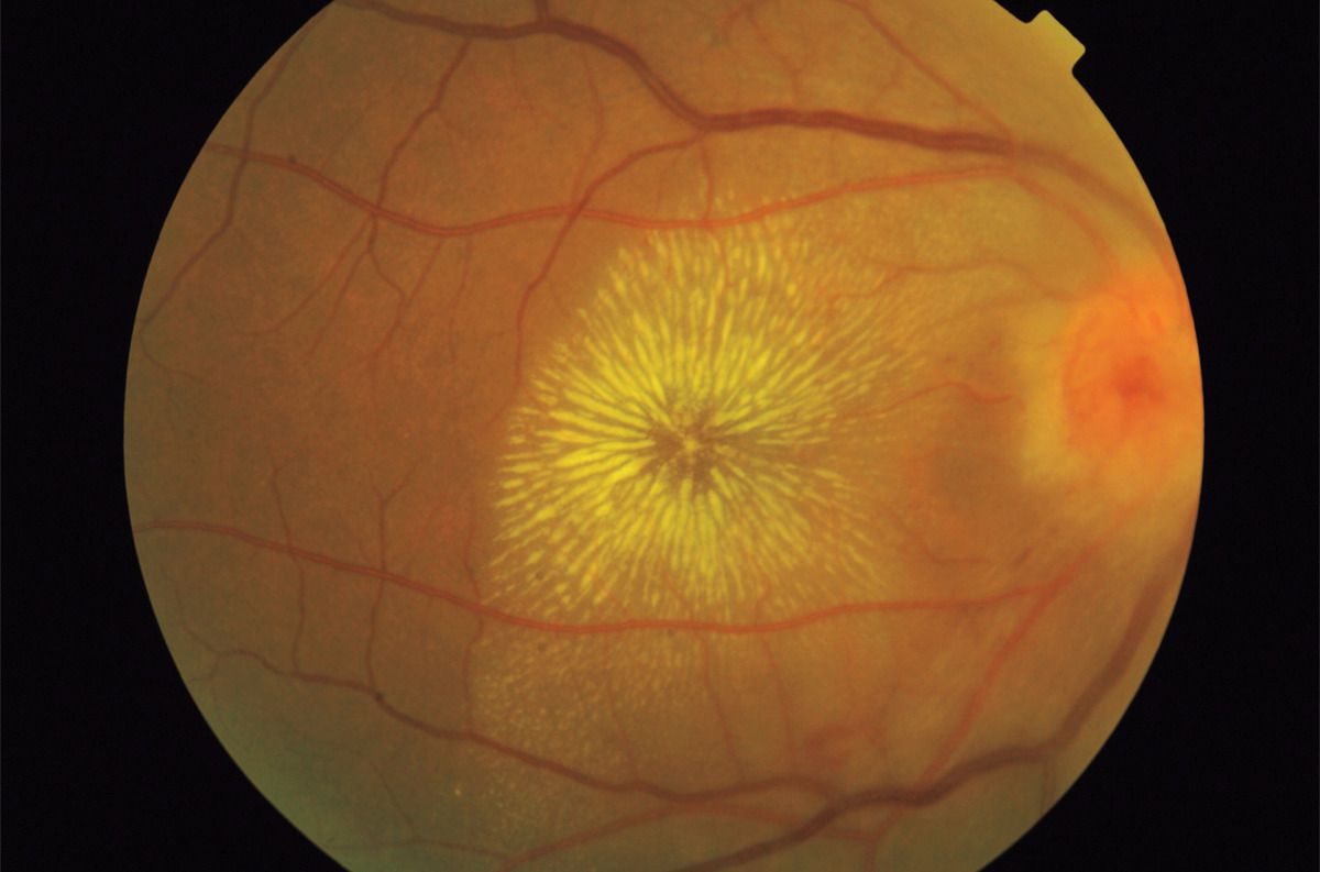 A 55-year-old woman presented to the ophthalmology clinic with blurry vision and pain in the right eye that had persisted for several days. She had no associated fever or lymphadenopathy. An ocular examination revealed severe vision loss (she could only count fingers), a relative afferent pupillary defect, and reduced color vision in the right eye. A slit-lamp examination showed anterior-segment inflammation, a swollen optic nerve with hemorrhages in the nerve fiber layer, and serous macular detachment. A fundus examination revealed macular edema with stellate exudates, findings that are consistent with bartonella infection. This diagnosis was supported by the results of serologic evaluation: at week 1, the IgM antibody titer to Bartonella henselae was 80 mg per deciliter, and the IgG antibody titer was 256 mg per deciliter; on repeat testing at week 3, the IgG antibody titer had increased to 1024 mg per deciliter. Other possible infectious causes of neuroretinitis include toxoplasmosis and syphilis, although many cases are idiopathic. Bartonella henselae is the causative agent of cat scratch disease; in the current case, the patient had been exposed to cats but recalled no recent scratch. Treatment with topical glucocorticoid drops, oral doxycycline, and oral prednisone was initiated. The macular edema, nerve swelling, and relative afferent pupillary defect resolved, and the patient regained visual acuity of 20/80 in the right eye.