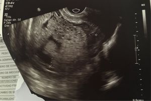 Paciente de 24 años en ecografía imagen en panel de abeja, bhcg 300000
