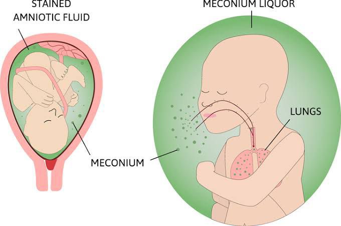 Meconium is your baby's first poop. It's darker and thicker than typical poop and extremely sticky. Meconium builds up inside your baby's intestines from swallowing amniotic fluid (the fluid that surrounds and cushions them inside your uterus). Ideally, your baby passes meconium shortly after birth.