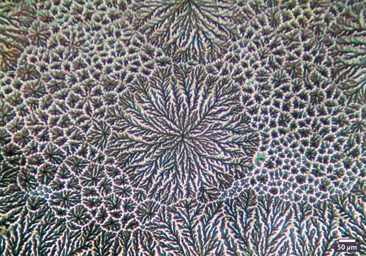 In a laboratory setting, a sample of nasal mucus from a healthy person was examined by phase-contrast microscopy at high magnification. A normal ferning pattern was observed. Mucus is predominantly water; electrolytes, mucin glycoproteins, lipids, and other smaller proteins constitute its nonaqueous components. When there is a balance of these nonaqueous components in healthy mucus, the evaporation of water can lead to crystallization of the electrolytes, and fern formation occurs. In combination with ciliary movement, the nasal mucus constitutes an important part of the innate defense mechanism of the airways, referred to as mucociliary clearance. A number of conditions, including allergic rhinitis and rhinosinusitis, may be characterized in part by a reduction in ferning.