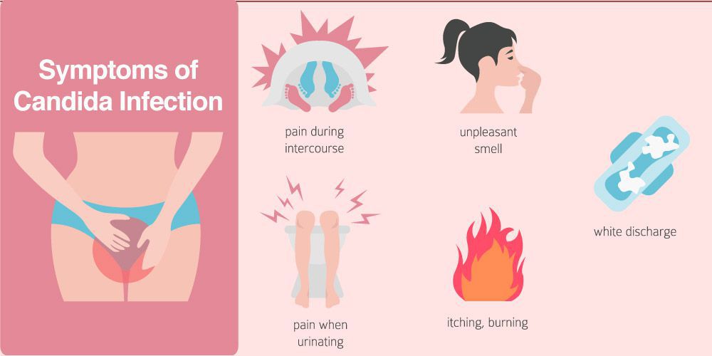 Symptoms White patches on the inner cheeks, tongue, roof of the mouth, and throat (photo showing candidiasis in the mouth) Redness or soreness. Cotton-like feeling in the mouth. Loss of taste. Pain while eating or swallowing. Cracking and redness at the corners of the mouth.