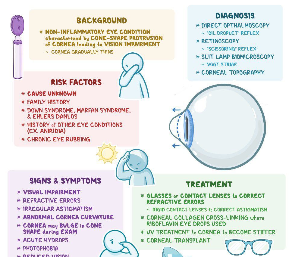 For mild to moderate keratoconus, your eye doctor may recommend inserting small synthetic rings in your cornea. This treatment can help flatten the cornea, which can help improve vision and make contact lenses fit better. Sometimes, this procedure is done in combination with corneal cross-linking. Cornea transplant.