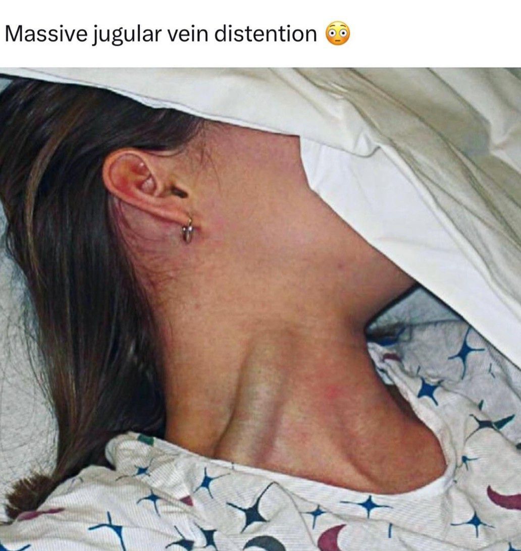 When a person’s jugular veins in their neck become visibly swollen, it’s known as Jugular Vein Distention (JVD). This happens when the pressure in the largest upper body vein, called the superior vena cava, rises. These veins carry blood from the head to the heart and lungs. JVD makes the jugular vein on the right side of the neck bulge. We measure blood flow from the head to the heart using Central Venous Pressure (CVP). It looks like a raised tube under the skin, and its height indicates CVP. There are various reasons for JVD, including right-sided heart failure, valve issues, and more. In the case of cardiac tamponade, we watch for three signs known as Beck’s Triad: low blood pressure, swollen neck veins, and muffled heart sounds. Cardiac tamponade is an emergency condition where fluid builds up around the heart and affects its ability to pump blood.