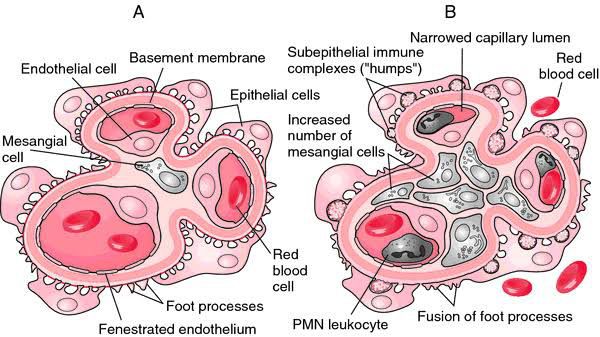 Crescentic glomerulonephritis, also known as rapidly progressive glomerulonephritis, is characterized by the presence of extensive glomerular crescents (usually greater than 50%) as the principal histologic finding. The disease can be primary or secondary. Primary or idiopathic crescent glomerulonephritis is classified into the following types: Type 1 (anti-glomerular basement membrane [GBM] disease) presents with linear deposits of immunoglobulin G (IgG) Type 2 (immune-complex mediated) presents with granular deposits of immunoglobulin Type 3 (pauci-immune) presents with few or no immune deposits, antineutrophil cytoplasmic antibody-associated small-vessel vasculitis (SVV) that may be renal-limited or part of a systemic disease, for example, granulomatosis with polyangiitis (GPA). Type 4 includes combinations of types 1 and 3 Type 5 is ANCA-negative, pauci-immune renal vasculitis (5% to 10% of cases) A crescent is made up of proliferating epithelial cells that line the Bowman capsule and infiltrating macrophages. It is a marker of severe glomerular injury. The crescents may be circumferential or noncircumferential, and the presence of circumferential crescents in over 80% of glomeruli portends a poor prognosis.