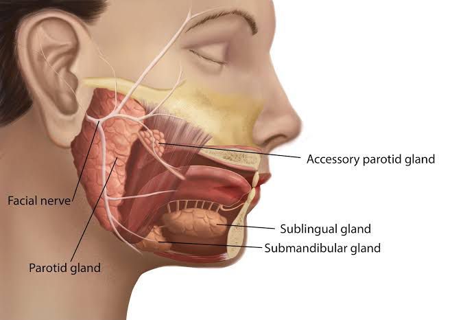 Your parotid glands are major salivary glands. They’re located just beneath and in front of each ear. Each of your parotid glands produce about 10% of the total saliva in your mouth — even more when you eat. Sometimes, your parotid gland can become infected or swollen. Treatments may include antibiotics, warm compresses and massage.
