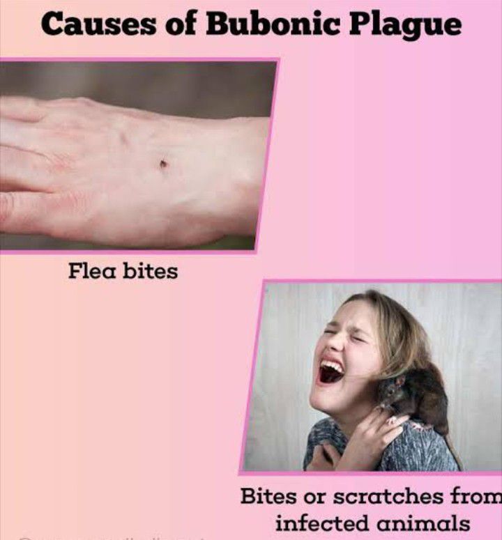 Bubonic plague is the most common form of plague and is caused by the bite of an infected flea. Plague bacillus, Y. pestis, enters at the bite and travels through the lymphatic system to the nearest lymph node where it replicates itself.