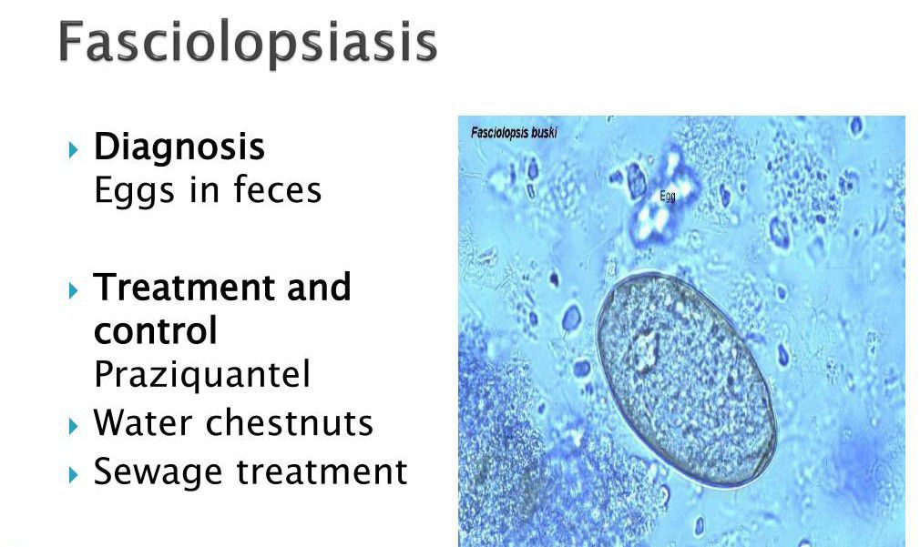 Is there treatment for fasciolopsiasis? Yes, fasciolopsiasis can be treated with prescription medicine taken by mouth, called praziquantel. Praziquantel is approved by the FDA, but considered investigational for this purpose