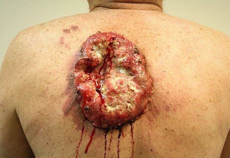 Squamous cell carcinoma (SCC), the second most common form of skin cancer, is an uncontrolled growth of abnormal cells arising from the squamous cells in the epidermis, the skin’s outermost layer. . SCCs often look like scaly red patches, open sores, warts or elevated growths with a central depression; they may crust or bleed. They can become disfiguring and sometimes deadly if allowed to grow. . Cumulative, long-term exposure to ultraviolet radiation from the sun over your lifetime causes most SCCs. Daily year-round sun exposure, intense exposure in the summer months or on sunny vacations and the UV produced by indoor tanning devices all add to the damage that can lead to SCC. . SCCs may occur on all areas of the body, including the mucous membranes and genitals, but are most common in areas frequently exposed to the sun, such as the rim of the ear, lower lip, face, balding scalp, neck, hands, arms and legs. The skin in these areas often reveals telltale signs of sun damage, including wrinkles, pigment changes, freckles, “age spots,” loss of elasticity and broken blood vessels. . If left untreated, SCCs may spread (metastasize) to local lymph nodes, distant tissues and organs and can become life-threatening.