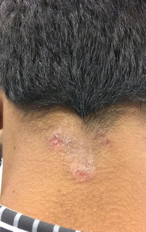 22 yr old male pt. compl. Itching at posterior neck since 2-3 wk !!!