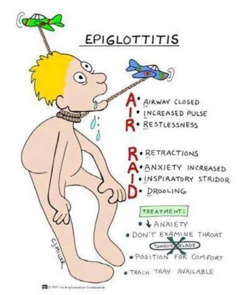 Epiglottitis is an inflammatory condition of the epiglottis and/or nearby structures including the arytenoids, aryepiglottic folds, and vallecula. Epiglottitis is a life-threatening infection that causes profound swelling of the upper airways which can lead to asphyxia and respiratory arrest.
