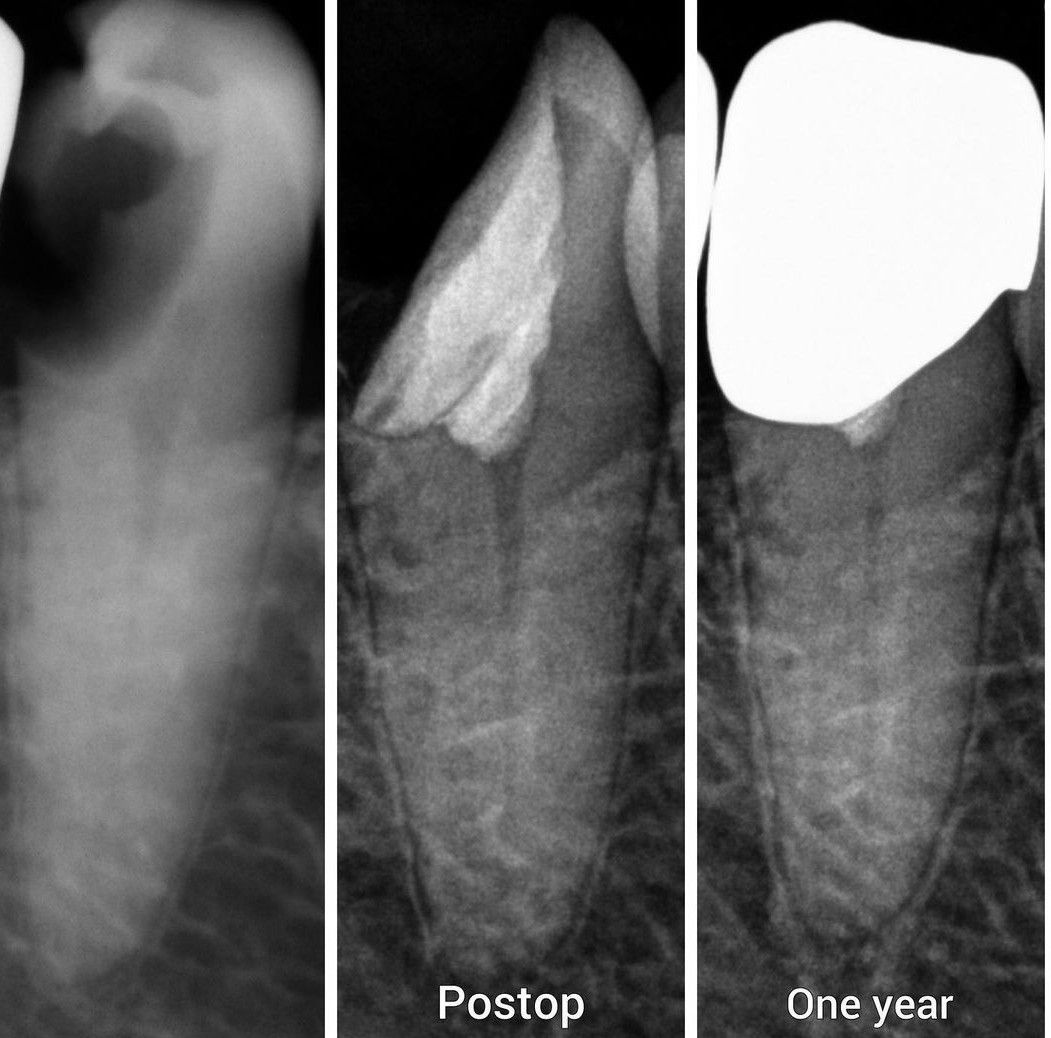One year post-op after vital pulp therapy.