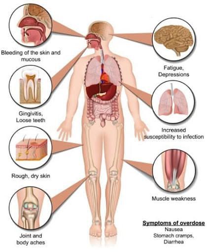 Vitamin C deficiency, also known as scurvy, is a disease primarily associated with socioeconomic status and access to food. Signs and symptoms are often readily visible in individuals who develop this disease. The classic constellation of corkscrew hairs, perifollicular hemorrhage, and gingival bleeding is highly suggestive of vitamin C deficiency.Scurvy is a clinical syndrome that results from vitamin C deficiency. The Vitamin C pool in the body is usually depleted in 4 to 12 weeks if one stops the intake of the vitamin. Ascorbic acid is affected by many factors that can impair absorption and its functions. The best way to prevent vitamin C deficiency is to consume fruits and vegetables regularly.