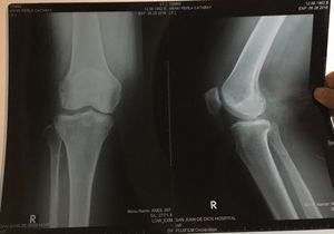 A 56 years old woman has exclusive pain on the right of her knee. Is this a normal x-ray? If not what is the findings?