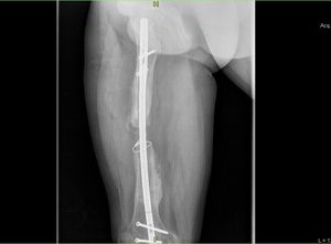 The fracture of the femur in the traffic accident , 6 operations, an infection, an external fixator, and now intermediate wedge..