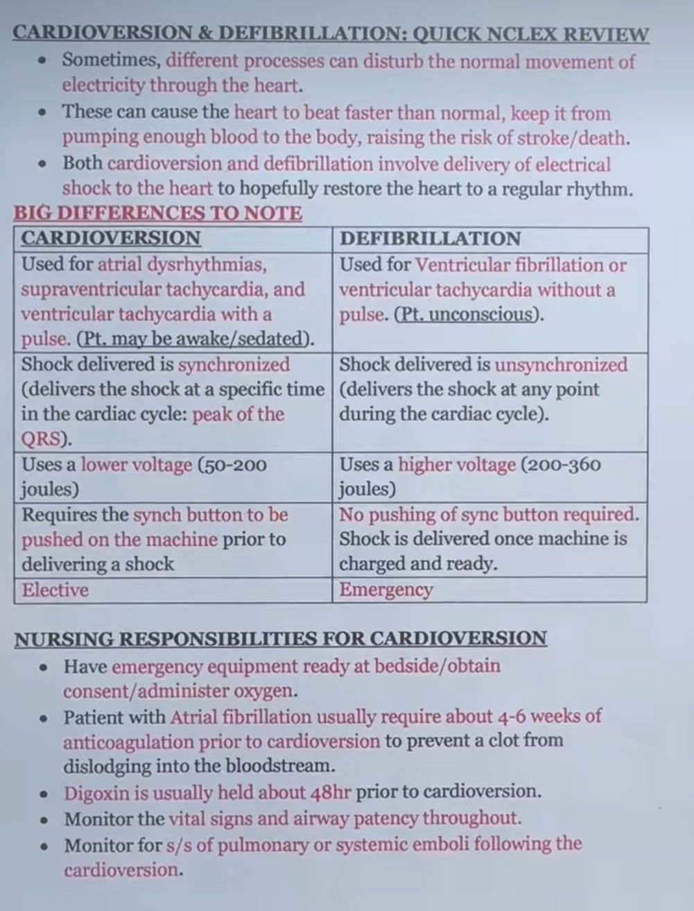 Cardioversion and Defib