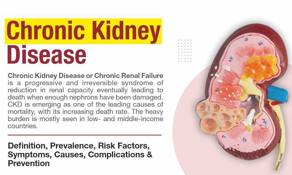 CKD is a condition in which the kidneys are damaged and cannot filter blood as well as they should. Because of this, excess fluid and waste from blood remain in the body and may cause other health problems, such as heart disease and stroke.