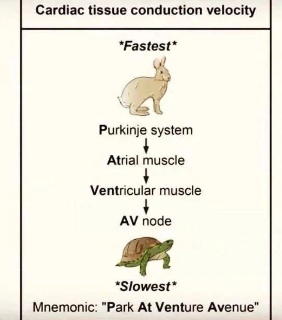 Here is a mnemonic to memorize the cardiac tissue conduction velocity.