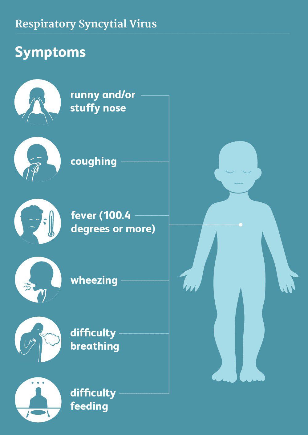 Symptoms of Respiratory syncytial virus (RSV) Runny nose. Decrease in appetite. Coughing. Sneezing. Fever. Wheezing.