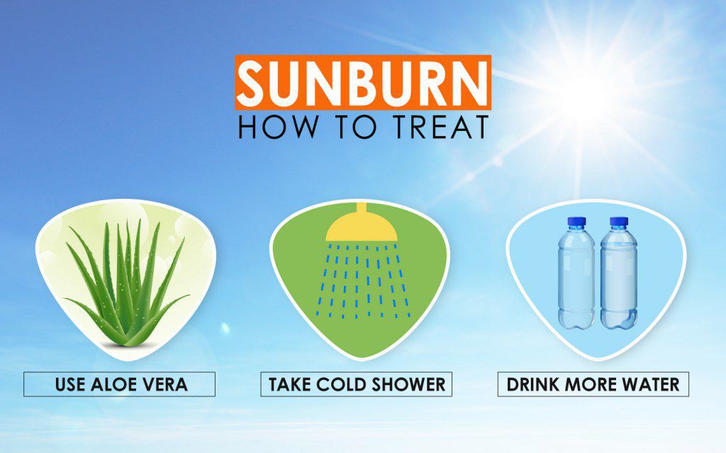 Here are a few things you can do to treat sunburn and ease your discomfort: Keep skin cool and moist. ... Avoid products that contain benzocaine. ... Leave blisters alone. ... Take an over-the-counter pain reliever. ... Treat peeling skin gently. ... Drink extra water