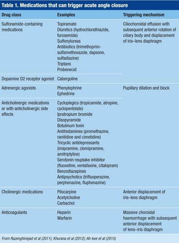Medications that trigger acute angle closure glucoma