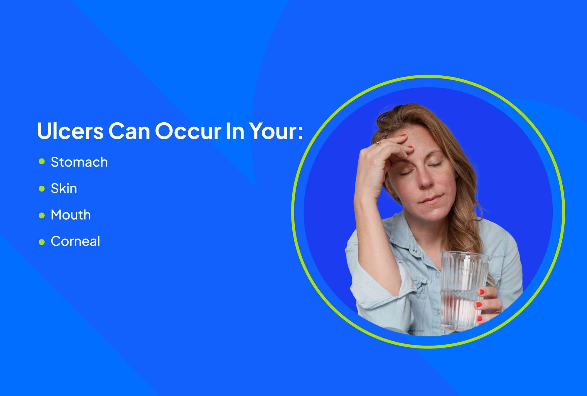 Ulcers are caused when there is an imbalance between the digestive juices produced by the stomach and the various factors that protect the lining of the stomach. Symptoms of ulcers may include bleeding. On rare occasions, an ulcer may completely erode the stomach wall.