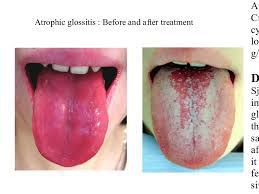 What are the symptoms of glossitis? Smooth, glossy tongue. Sore, tender or painful tongue. Swollen tongue. Tongue redness. Difficulty speaking, eating or swallowing.