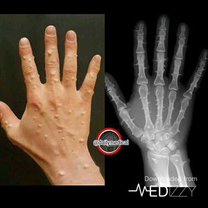Üstüste gelen deri perdelemeli, falanjlardan, metakarplardan, akciğere ve görüntülenen distal radius ve ulnadan sayısız dik periosteal çıkıntılar. Bu görünüm kaktüs hastalığı veya paleo kaynaklı mineral periostitis patognomoniktir. Dava ilk olarak Radiopaedia.org'un nisandaki aptal davalarından biri olarak yayınlandı. Here the statement is in turkish like you asked
