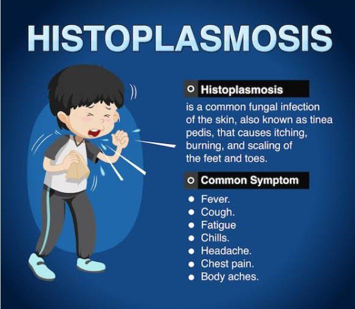 Symptoms of Histoplasmosis Fever. Cough. Fatigue (extreme tiredness) Chills. Headache. Chest pain. Body aches.