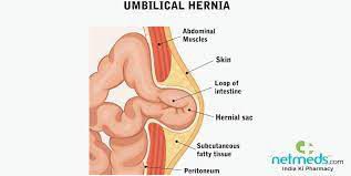 An umbilical hernia creates a soft swelling or bulge near the navel. It occurs when part of the intestine protrudes through the umbilical opening in the abdominal muscles. Umbilical hernias in children are usually painless. Umbilical hernias are most common in infants, but they can affect adults as well. In an infant, an umbilical hernia may be especially evident when the infant cries, causing the bellybutton to protrude. This is a classic sign of an umbilical hernia. Children's umbilical hernias often close on their own in the first two years of life, though some remain open into the fifth year or longer. Umbilical hernias that appear during adulthood are more likely to need surgical repair.