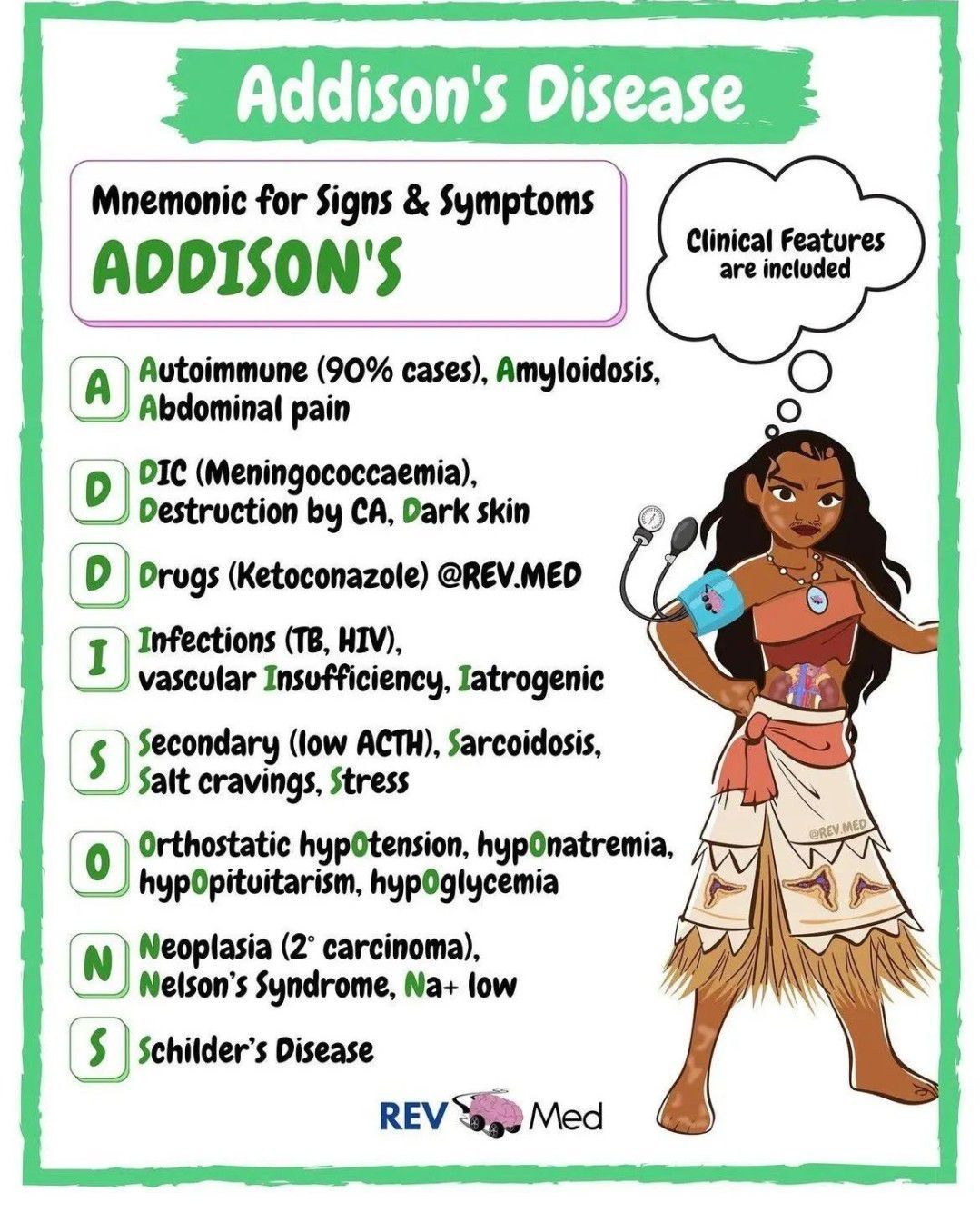 Here is a mnemonic to memorize addison's disease.
