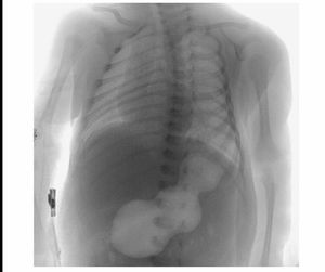 It's a 23 day old. So he isn't exactly gonna cooperate with the radio tech to be placed in optimal position. He was probably just moving or looking around. Not scoliosis.