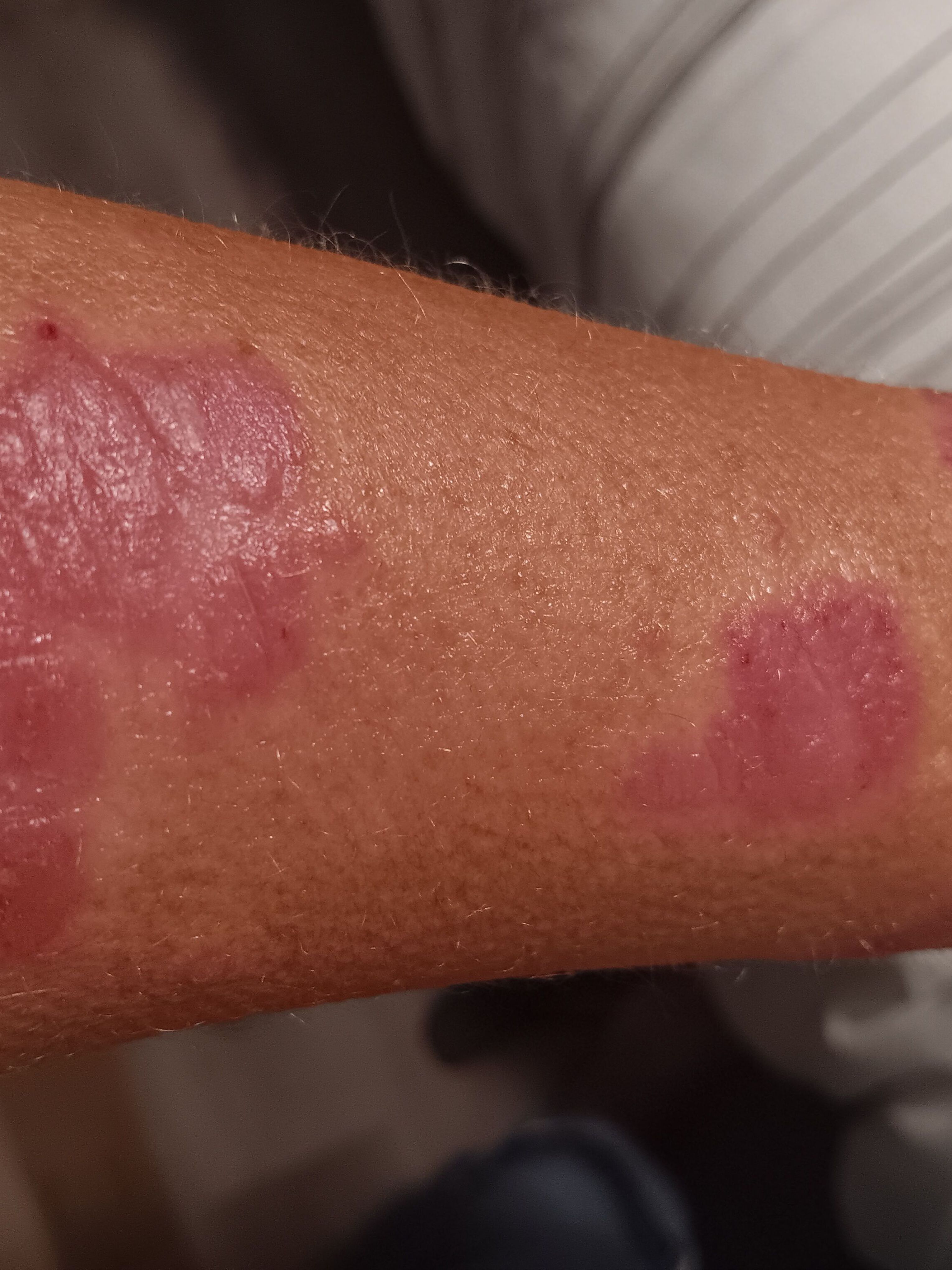 Please don't automatically say psoriasis bc it's not. It started 6months ago and they start small. But few weeks ago it started progressing more bumps. My back, legs, chest, face, scalp,ears are places where u see these.