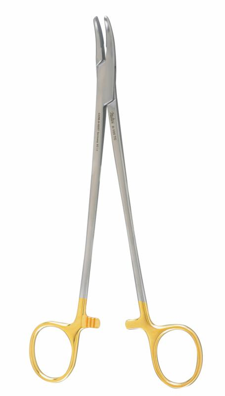 Heaney Needle Holder – Another tool you might see in a hysterectomy, along with dilation and curettage, the Heaney needle holder uses ratcheted blades for medium weight suturing. This holder can just as well be used as a cardiovascular approximation and closure instrument.
