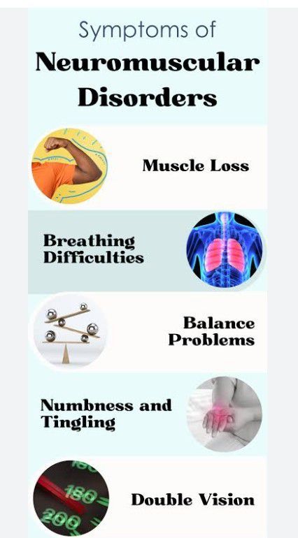 Symptoms of neuromuscular disorders muscular weakness. muscle wastage. muscular cramps. muscle spasticity (stiffness), which later causes joint or skeletal deformities. muscle pain. breathing difficulties. swallowing difficulties.