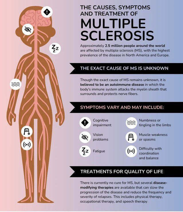 Multiple sclerosis is caused by your immune system mistakenly attacking the brain and nerves. It's not clear why this happens but it may be a combination of genetic and environmental factors.
