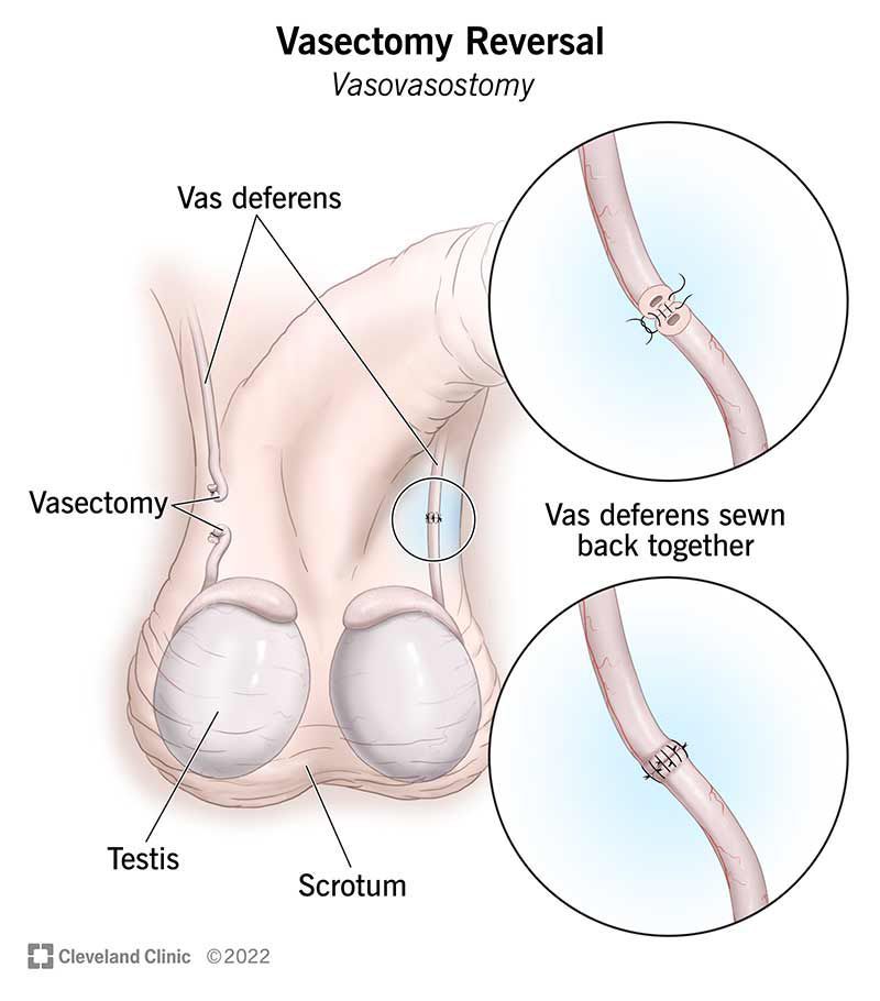 A potential concern with vasectomy is that you might later change your mind about wanting to father a child. Although it might be possible to reverse your vasectomy, there's no guarantee it will work. Reversal surgery is more complicated than vasectomy, can be expensive and is ineffective in some cases. Other techniques also are available to father a child following vasectomy, such as in vitro fertilization. However, these techniques are expensive and not always effective. Before you get a vasectomy, be certain you don't want to father a child in the future. If you have chronic testicular pain or testicular disease, you're not a good candidate for a vasectomy. For most men, a vasectomy doesn't cause any noticeable side effects, and serious complications are rare. Side effects right after surgery can include: Bleeding or a blood clot (hematoma) inside the scrotum Blood in your semen Bruising of your scrotum Infection of the surgery site Mild pain or discomfort Swelling Delayed complications can include: Chronic pain, which can happen for 1% to 2% of people who have surgery Fluid buildup in the testicle, which can cause a dull ache that gets worse with ejaculation Inflammation caused by leaking sperm (granuloma) Pregnancy, in the event that your vasectomy fails, which is rare. An abnormal cyst (spermatocele) that develops in the small, coiled tube located on the upper testicle that collects and transports sperm (epididymis) A fluid-filled sac (hydrocele) surrounding a testicle that causes swelling in the scrotum